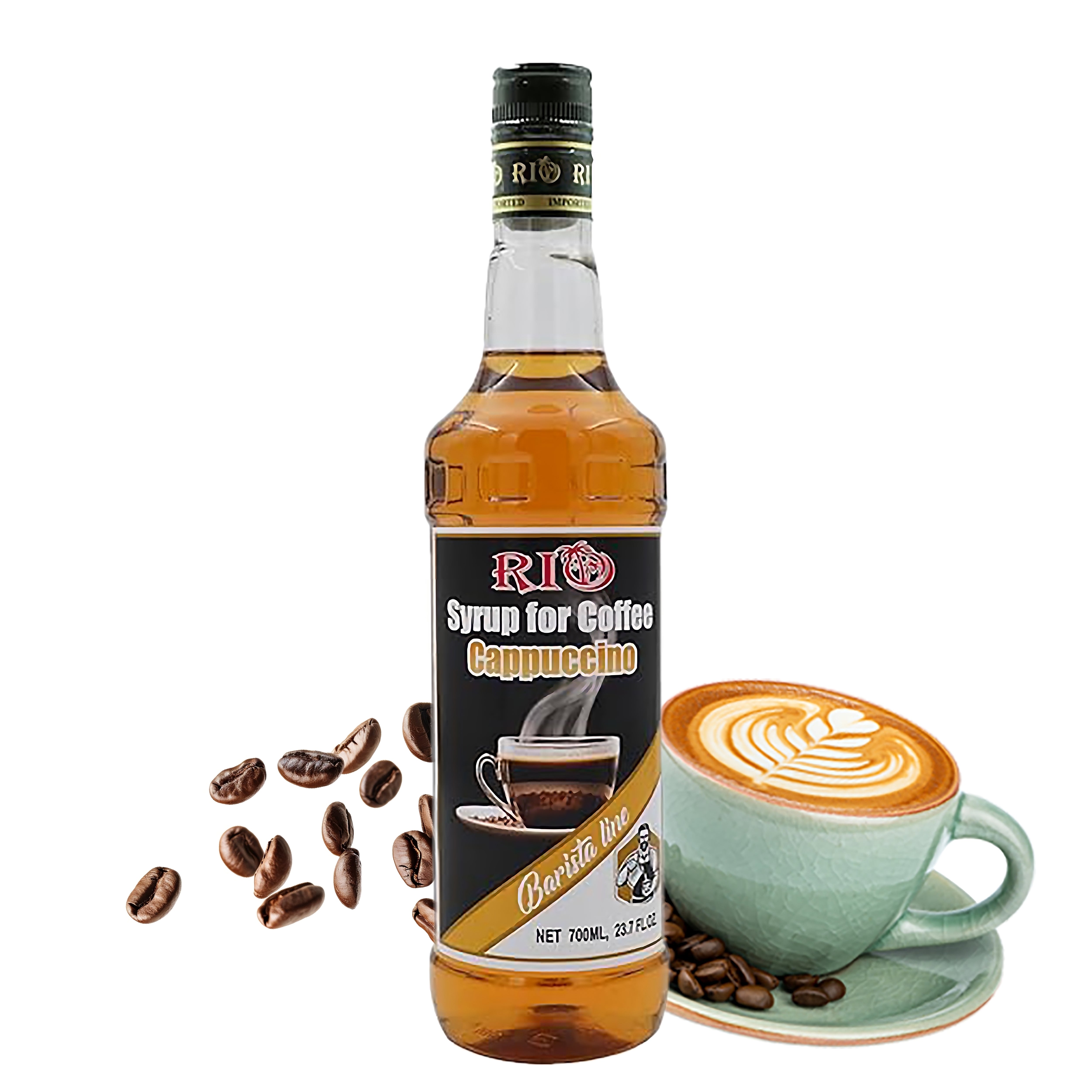 RIO Cappuccino Syrup, Barista-Grade Cappuccino Coffee Syrup for Lattes & Macchiatos, Flavoring for Hot & Iced Drinks, Non-GMO, 700ml