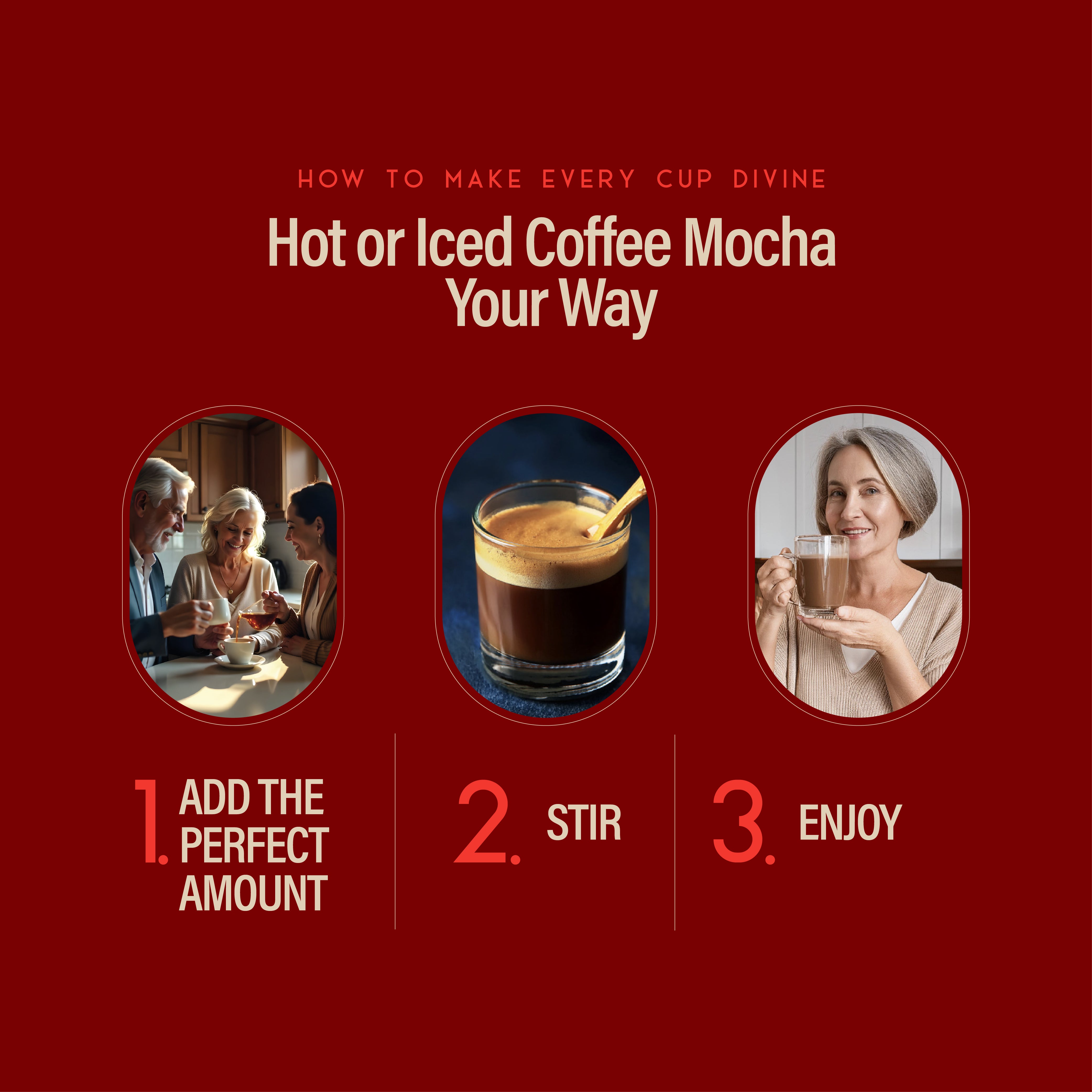 Bold espresso meets rich cocoa in a perfectly balanced dance of chocolate and coffee, enhanced by the smooth indulgence of Coffee syrup mocha.
