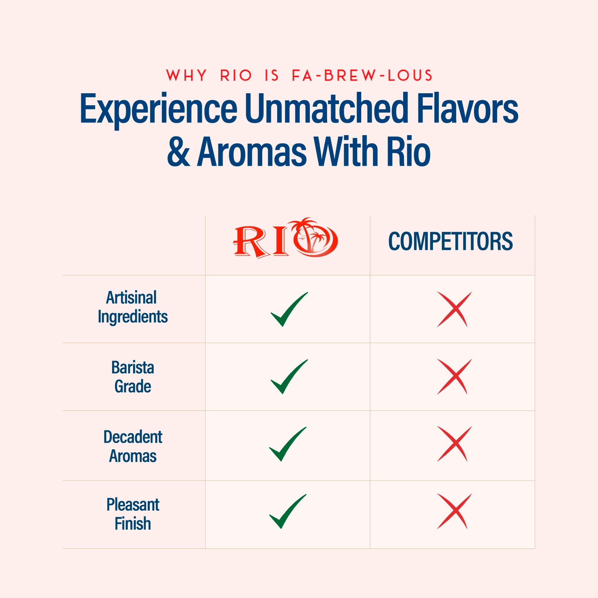 Once you've left the coffee shop, at-home coffee never tastes as good again until now. Achieving barista quality and flavor standards at home seemed impossible until years of effort resulted in the goal of bottling the premium coffee shop specialty drink feel at home. RIO is for those who believe in uncompromising flavor, quality, and the true coffee shop experience at home.